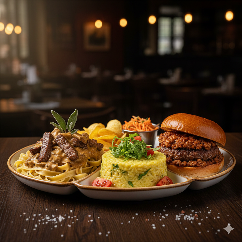Feine Fleisch- und Fischgerichte, kreative vegetarische Optionen und saisonale Spezialitäten für jeden Geschmack.