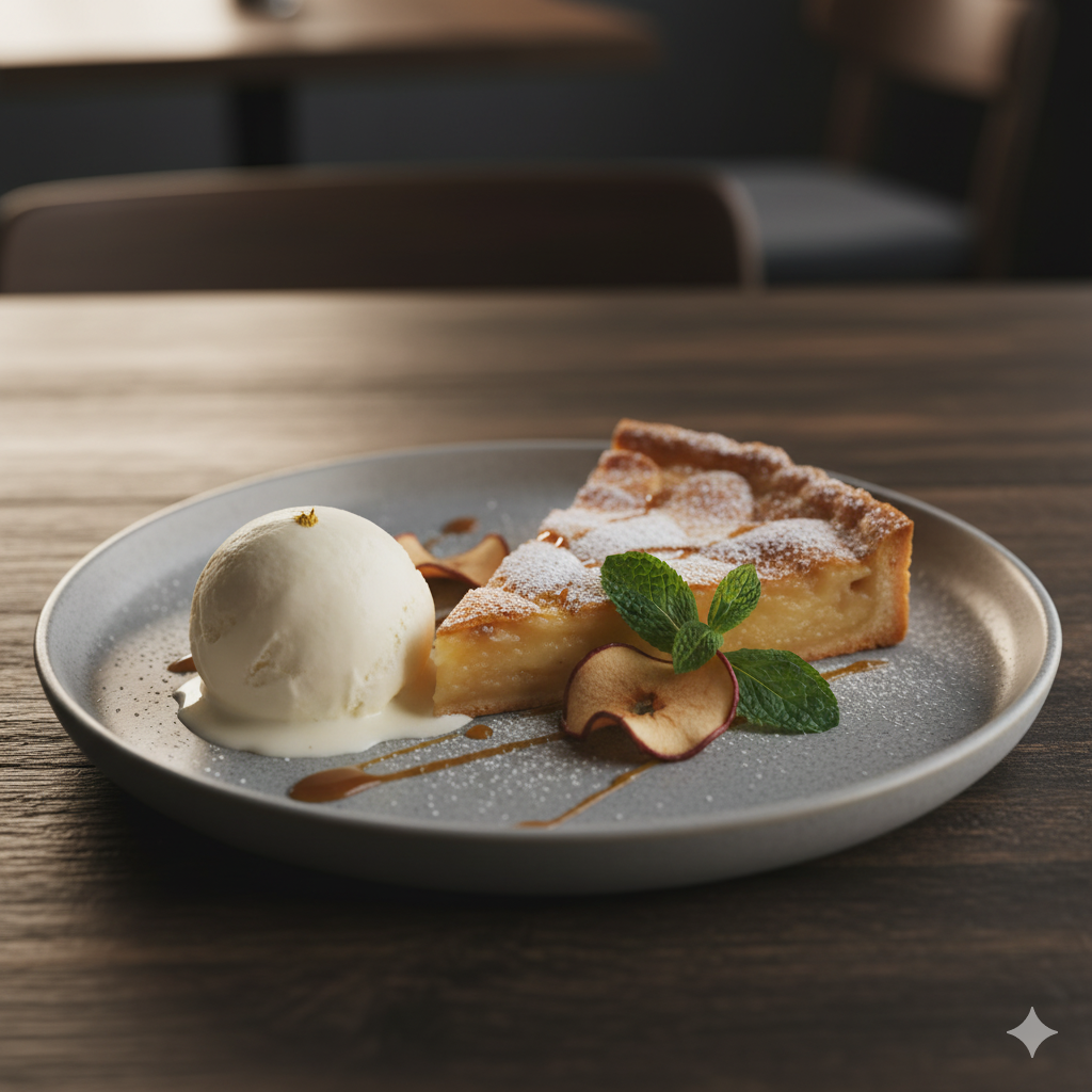 Warme Apfeltarte, serviert mit cremigem Vanilleeis – himmlisch süß.
